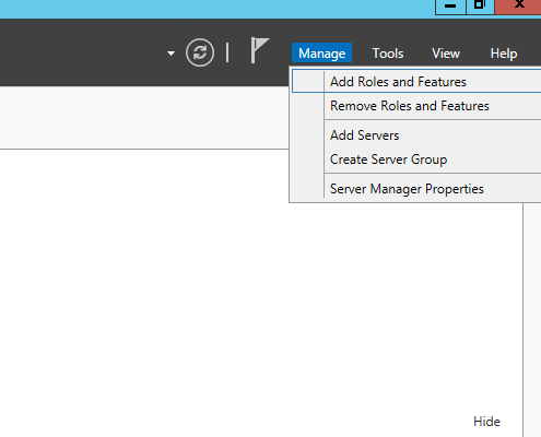Server Manager (작업표시줄 서류가방) 아이콘 클릭 - Manage - Add Roles and Features 클릭