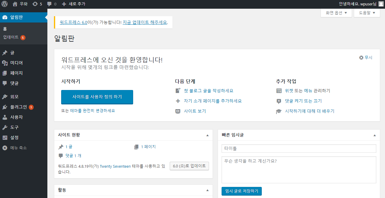 아까 압축 해제했던 wordpress.zip 내의 파일을 C:/inetpub/wwwroot 로 옮긴다.