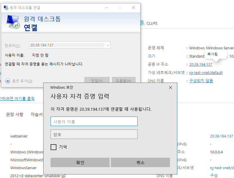 공용 IP - IP 복사-붙여넣기 할 필요 없음, Azure에서 미리 세팅된 별칭의 이름이 붙어 있다(webserver-ip)