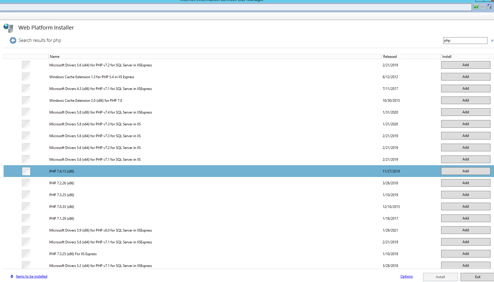 php 검색 - PHP 7.4.13 을 [Add]한 뒤 하단의 [Install] 버튼 클릭한다.