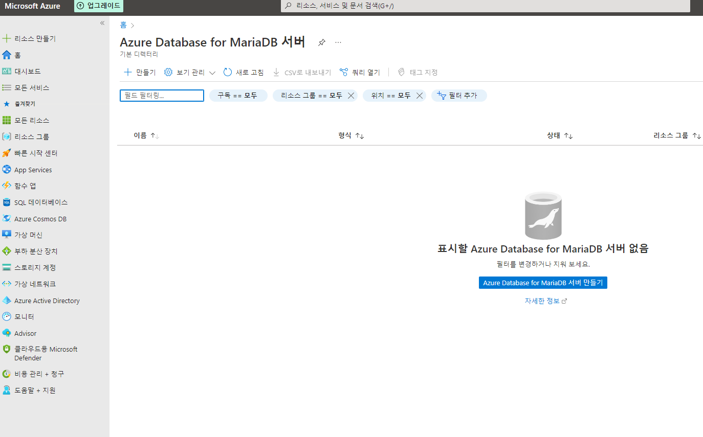 * Azure의 DB 서버는 @뒤에 서브도메인의 이름이 온다.