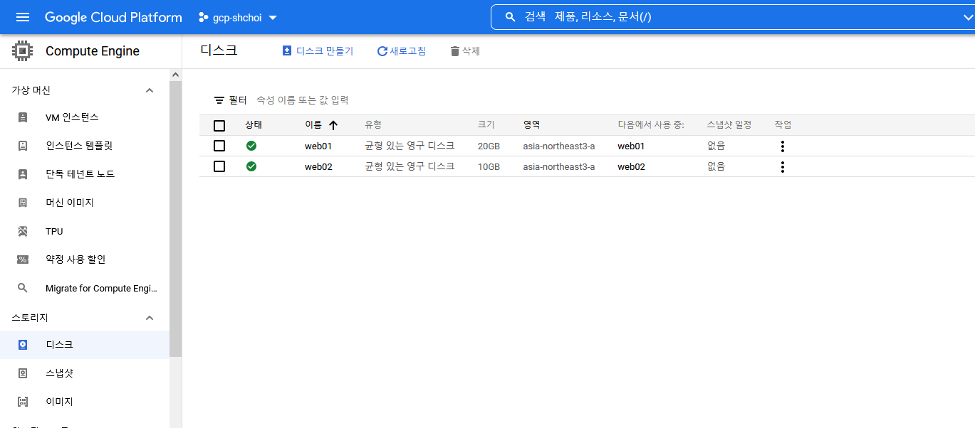 Compute Engine - 디스크 - [디스크 만들기] 클릭