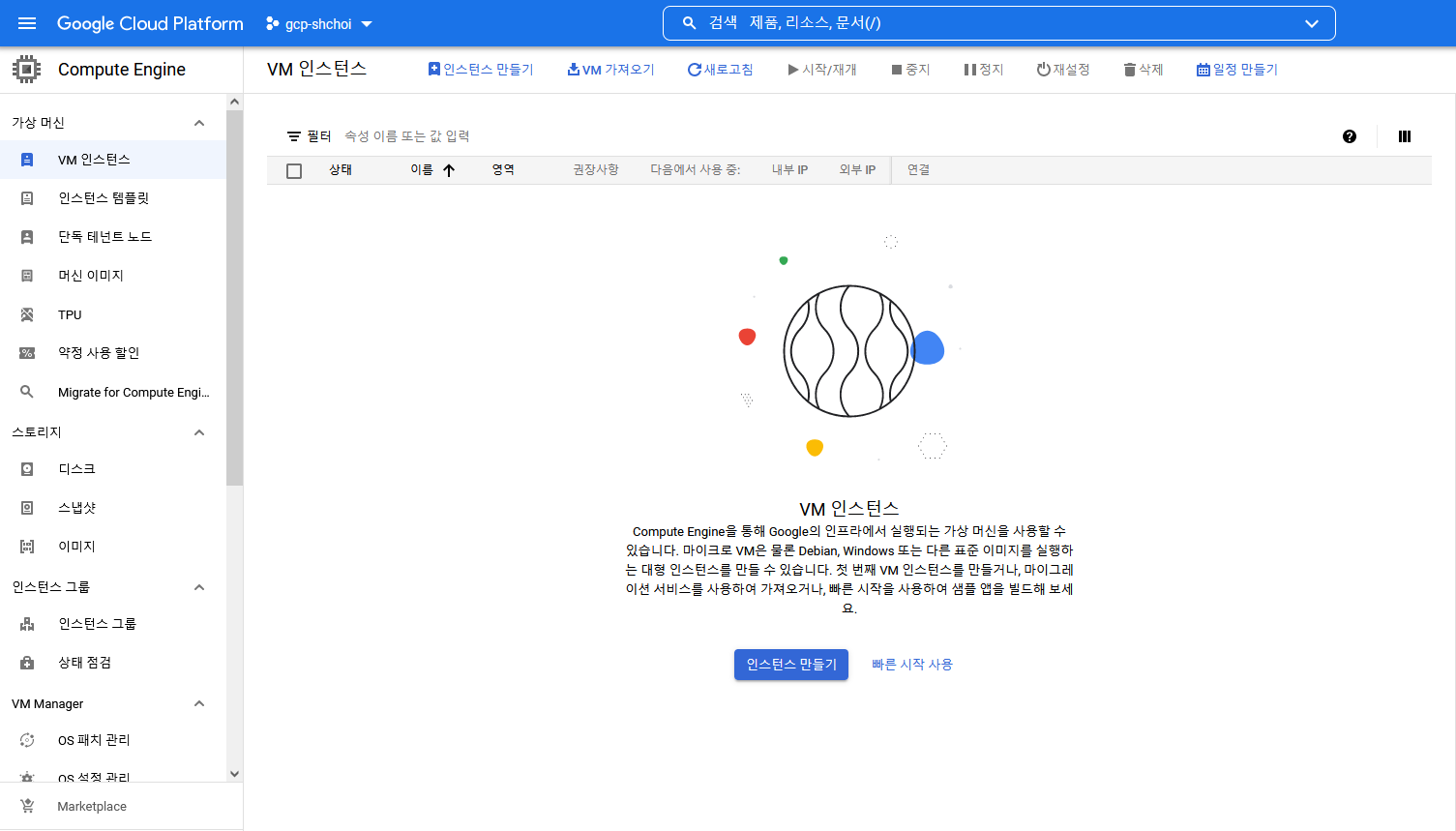 - GCE = Google Compute Engine , 구글 인스턴스를 만들어 주는 서비스