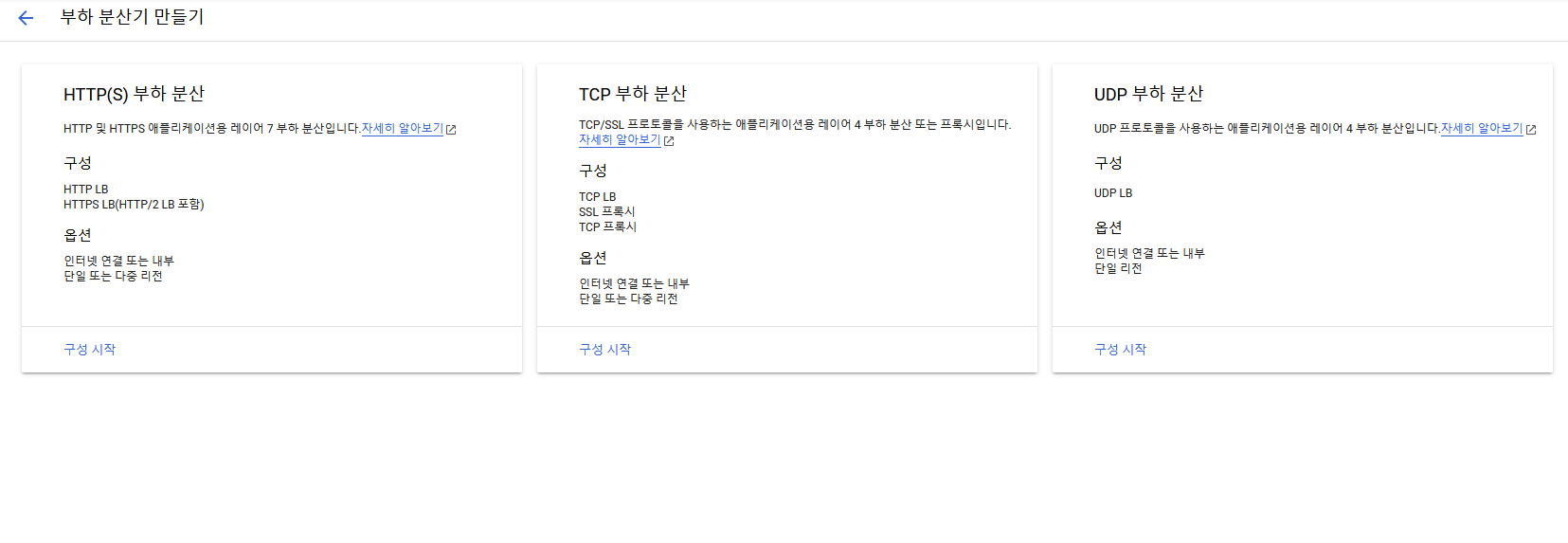 이 중 [HTTP(S) 부하 분산]을 클릭한다.