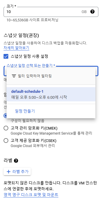 [스냅샷 일정]을 선택하면 매일 같은 시간(보통 퇴근 시간)에 스냅샷을 만들 수 있다.