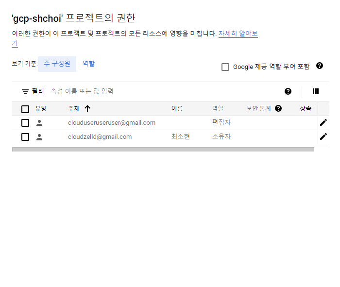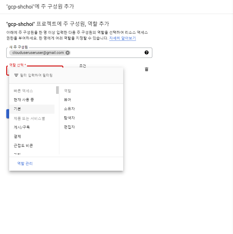 주 구성원으로 일반 유저로서 사용될 gmail을 추가한다.