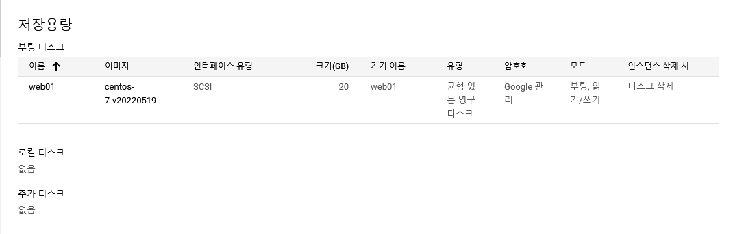 - 블록 스토리지(Persistent Disk) : OS, App이 설치되는 공간 (Win에서 C드라이브와 같은 역할). 4096byte(4K) 단위