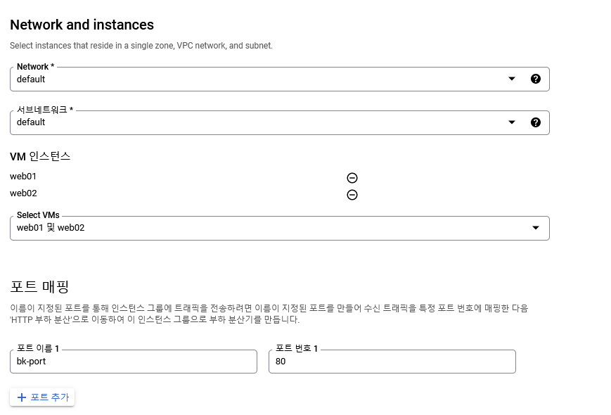 인스턴스 그룹으로 들어가서, web01과 web02를 묶어 준다.
