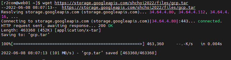 복사한 URL을 이용해서 tar파일을 다운로드 받는다.