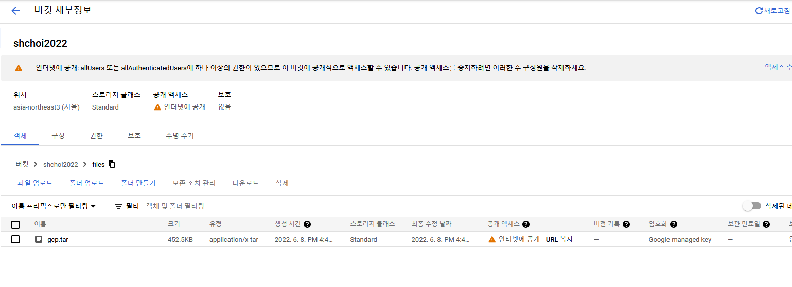 [이 버킷에 공개 액세스 방지 적용] =>파일이 쉽게 노출되어서 outbound traffic이 발생할 수 있으므로 이를 방지한다.