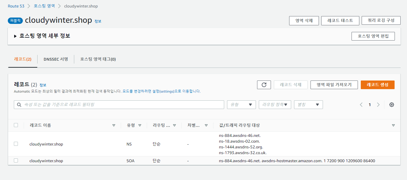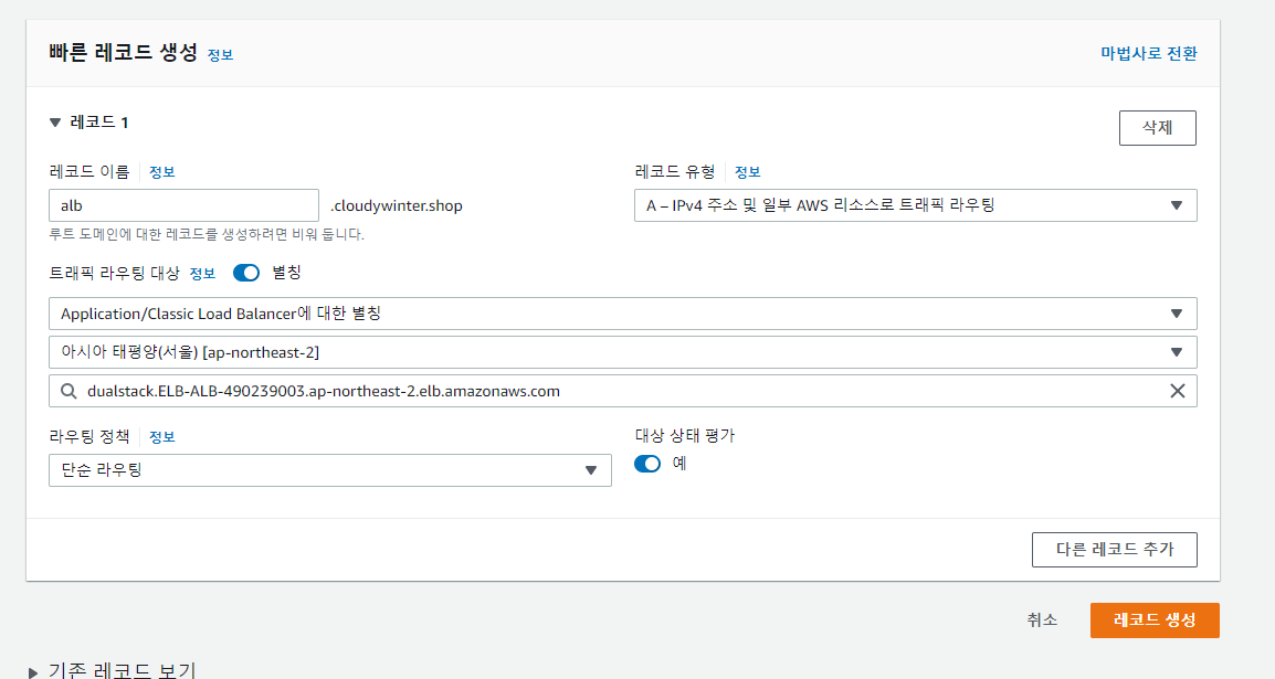 다시 Route53으로 가서, [레코드 생성] 클릭