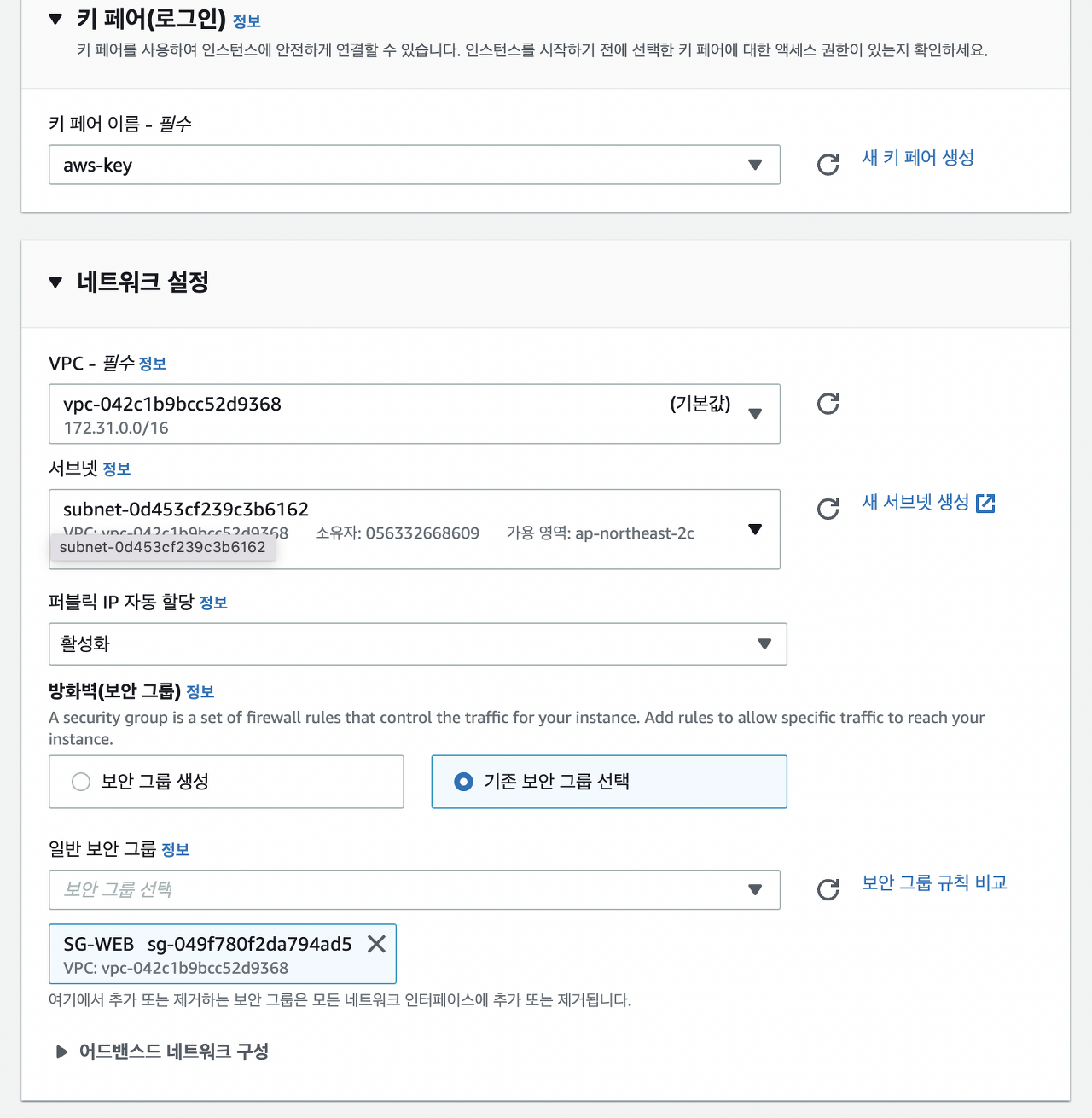 다시 EC2 탭으로 가서 [인스턴스 시작]을 클릭한다.