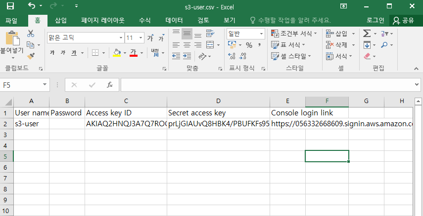 [.csv 다운로드] 를 눌러 credential 파일을 다운로드 받는다.