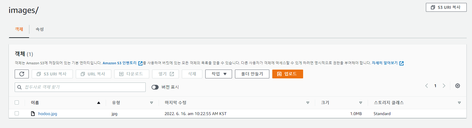S3에 images폴더가 없지만, cp명령어로 업로드 시키면서, images폴더를 만든다.