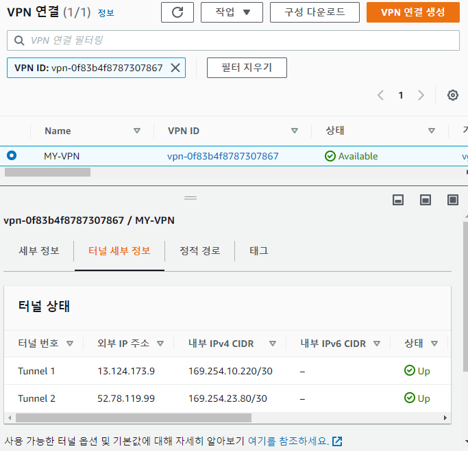 터널 두개 다 Up상태임을 확인할 수 있다