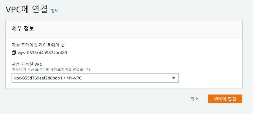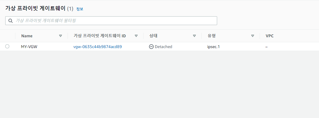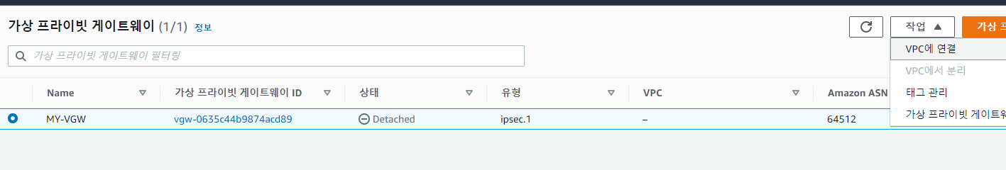VPC와 VPN Gateway가 attach 되어야 한다.