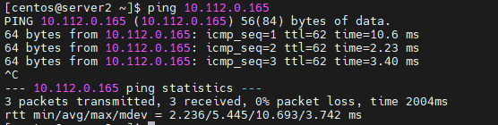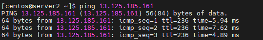 AWS의 ec2-user에서 Openstack내 인스턴스인 centOS로 이 ip로 ping을 쳐본다. - 안 됨