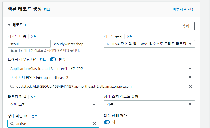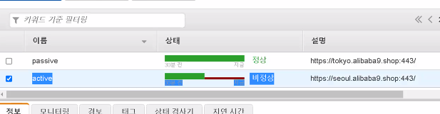Route53 - 에서 확인해 보면 active가 비정상 상태가 되었다.