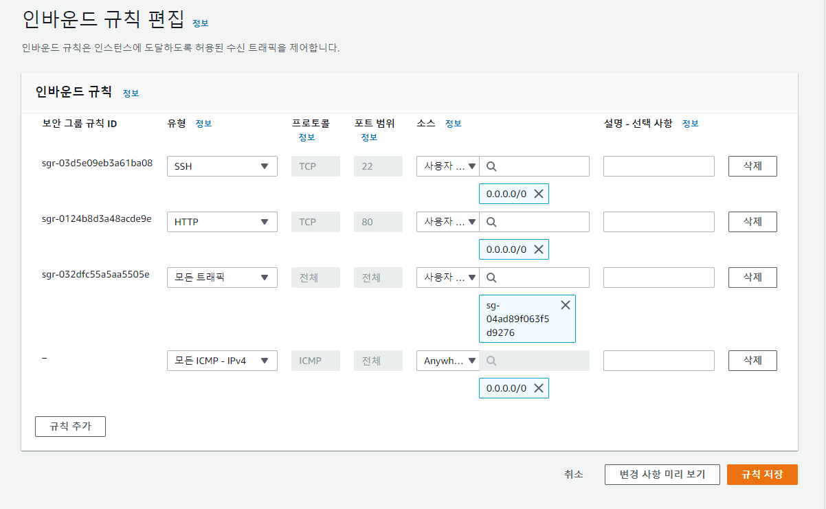 SG-WEB에서 ICMP를 인바운드 규칙으로 추가한다.