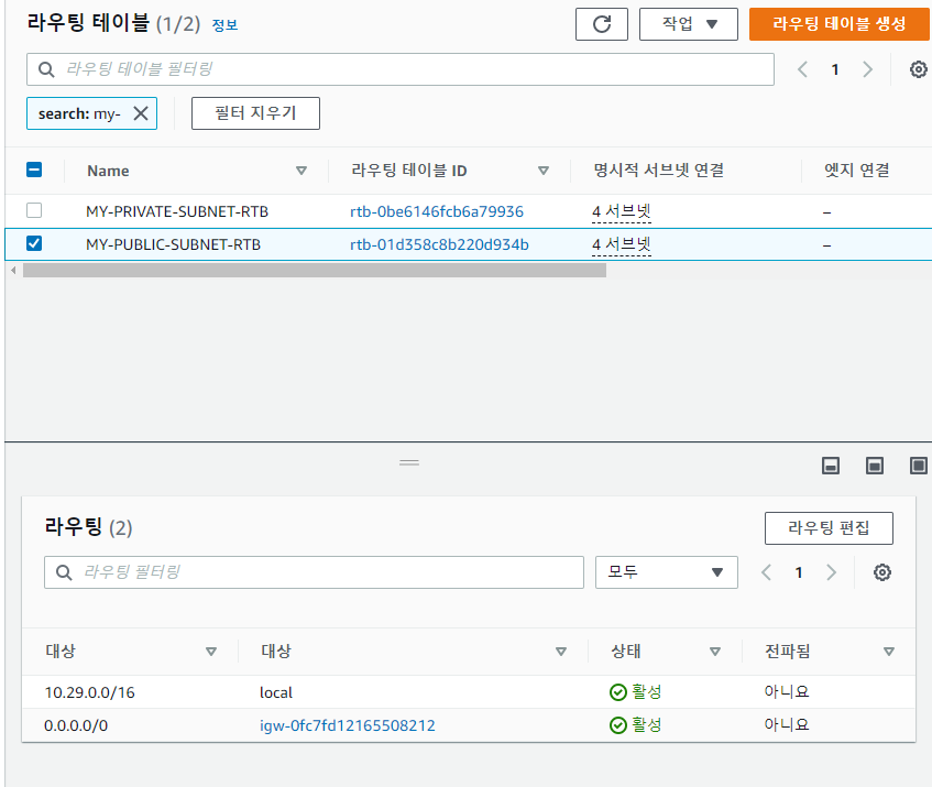 그 다음 MY-PRIVATE-SUBNET을 편집한다.