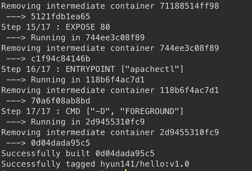 끝에 Successfully build 가 뜨면 성공적으로 완료된 것.