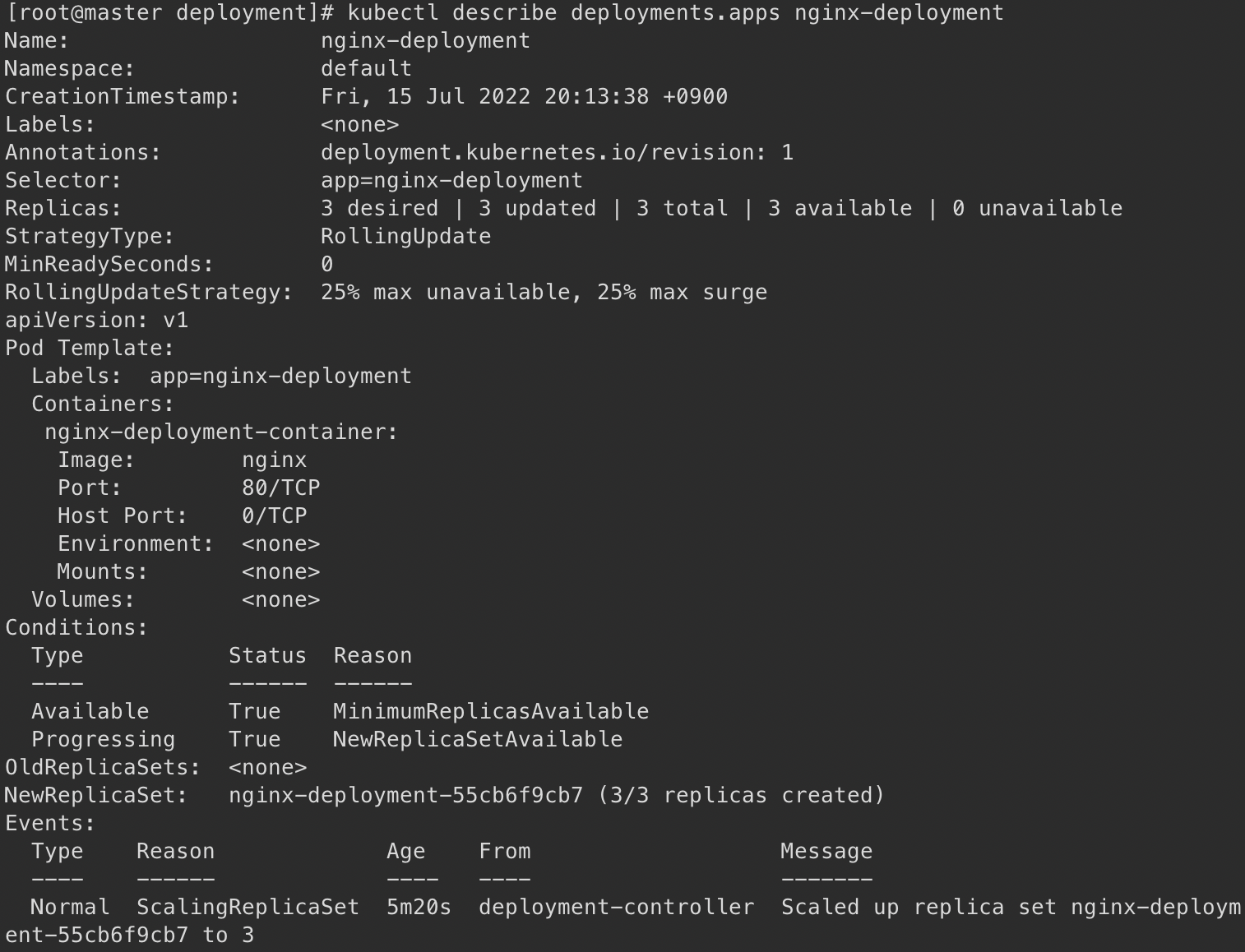 vi deployment.yaml # manifest 작성(: yaml파일로 작성해 놓은 선언적 API)