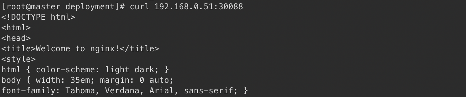 worker1, worker2 노드에 :30088 포트로 접속 가능하다. (master에는 pod가 설치돼있지 않기 때문에)