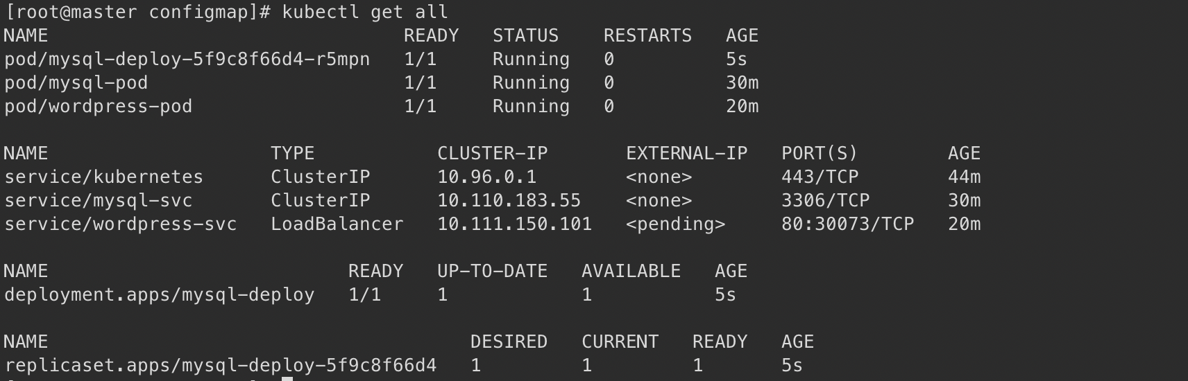 [root@master configmap]# kubectl exec -it configapp-c9bb7b748-lxpgq -- bash
